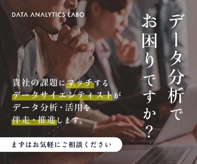 当サイトの運営会社であるデータアナリティクスラボ株式会社は、データサイエンティストのプロフェッショナルサービスを提供しています。主成分分析による分析実績も多数ございますのでお気軽にご相談ください。