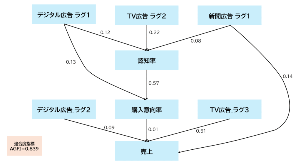 今回は、適合度指標のAGFIが最も高かったモデルを最終モデルとして採用しています。