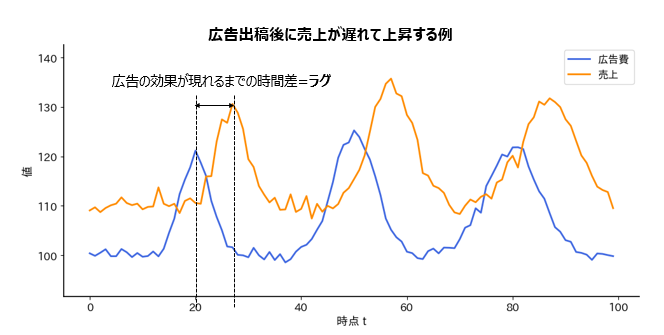 例えば広告の場合、テレビCMを見た人がすぐ購入するとは限らず、数日後にECサイトで調べてから買うケースや、口コミや認知が広がって数週間後に売上へつながるケースもあります。