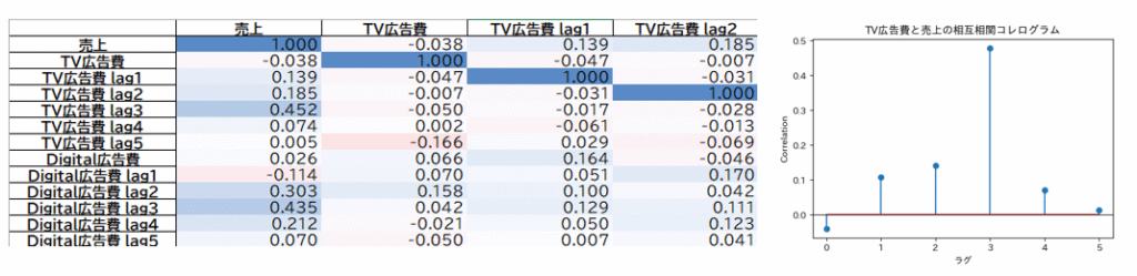 これらをラグごとのヒートマップやコレログラムで可視化することで、指標間に存在するタイムラグや先行・遅行の関係といった、時間的な構造を把握できます。